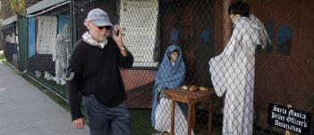 Each year since 1953, the coalition has set up Nativity scenes along Ocean Avenue at Palisades Park. Three years ago, atheist Damon Vix challenged that tradition. He applied for and was granted his own booth and set up a sign that read, “Religions are all alike—founded on fables and mythologies.”
